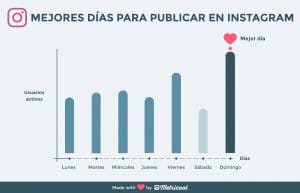 - El mejor día para publicar en Instagram es el domingo. Curiosamente, ése día, el domingo es el peor día para publicar tanto en Facebook como en Twitter. Esto demuestra la gran diferencia entre Instagram y el resto de redes.