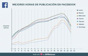 La mejor hora para publicar entre semana en Facebook es entre las 20 horas y las 21 horas. Por supuesto, las peores horas se concentran en la madrugada y va mejorando de forma progresiva hasta por la noche.