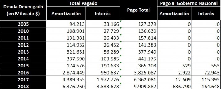 La vuelta del dasnevismo disparó la deuda con Nación a 1.122 millones de pesos en 2016, para llegar a 1.433 millones en 2017 y concluir 2018 con una merma que la dejó en 1.174 millones de pesos.