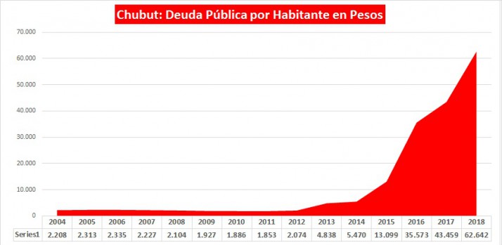 Cuando Das Neves y Arcioni asumieron se encontraron con una deuda que ascendía a los 7.426 millones de pesos generada hasta 2015. Pasó a los 20.542 millones de pesos en 2016 y luego trepó a los 25.553 millones de pesos en 2017 y llegó a los 37.483 millones de pesos en 2018.